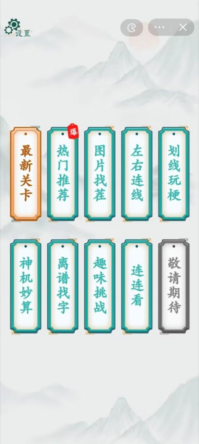1、是一款以汉字为题材的烧脑游戏,游戏有很多关卡挑战;