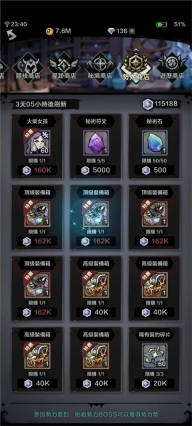 这里是可以产出装备和觉醒材料的,几十钻石血赚。后期不缺资源了,可以酌情。