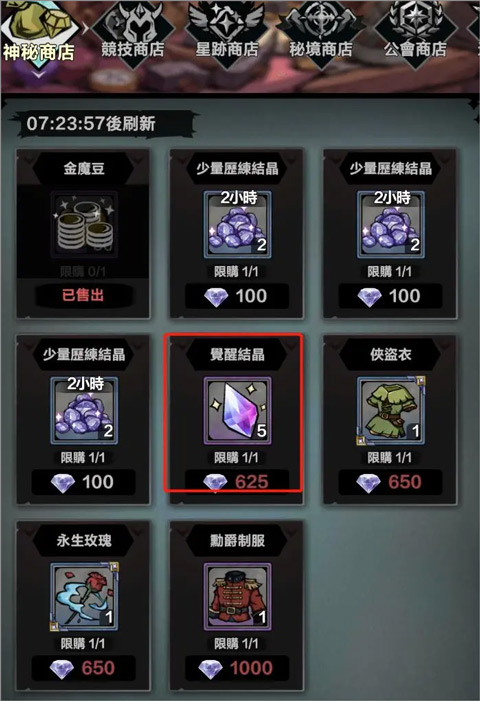 后期,神秘商店的觉醒材料通常都要买的,后期巨缺,前期不买后期要多卡很多天。