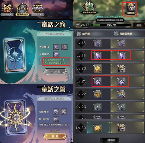只氪启示录和月卡,尤其是小月卡。启示录里面有专有英雄彼得潘,在前期能提升过图速度并且英雄试炼中刷碎片很关键。其次启示录里面有很多稀缺资源,如觉醒材料,后期巨缺。小月卡多一次英雄试炼,英雄试炼阵容成型可以一把刷25-40的紫卡碎片,每天多一把还是多很多的。跳过也可以极大节省时间。