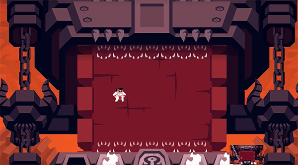 若不采取回避策略,这场战斗将极具挑战性。玩家需要在躲避尖刺的同时避开boss的攻击,并在屏幕停止移动时攻击两侧的链条以继续前进。