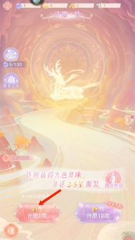 8、许愿可以获得九色灵珠以及2~4星服装,点击【许愿1次】,