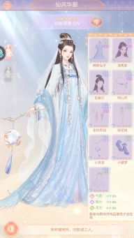 10、此外,你还能在云裳坊浏览多种风格的属性套装,如盛唐时尚、仙风华服、异域风情、一舞倾城等,这里以【仙风华服】为例,