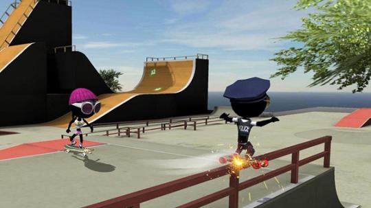 1、在这个游戏中,玩家将控制自己的卡通大头角色玩滑板。