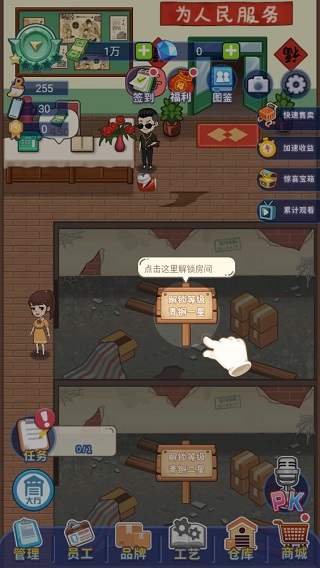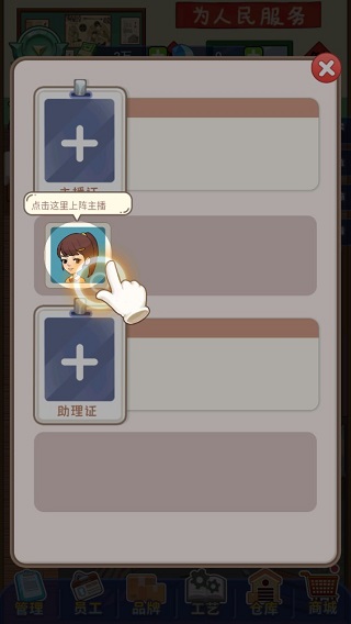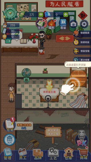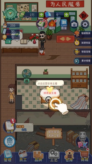创业播播播游戏是一款以直播带货为主题的模拟经营手游。在游戏里,“老爸”创办的工厂因产品销路不畅,已然陷入困境。此刻,你将接手这家工厂,通过直播带货的方式开拓市场,从一无所有开始,逐步发展到自主研发产品,一步步构建起属于自己的商业帝国。