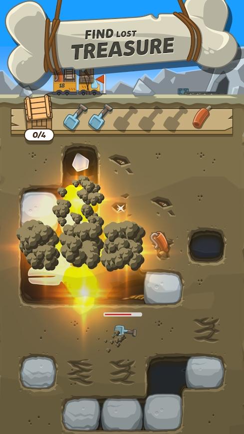 到了后面,玩家需要寻找的化石会更多,这需要他们保持耐心;这些化石还可能造成误导,导致玩家在寻找过程中浪费锤子;每个关卡只有三把锤子,所以玩家在使用时需要格外小心。