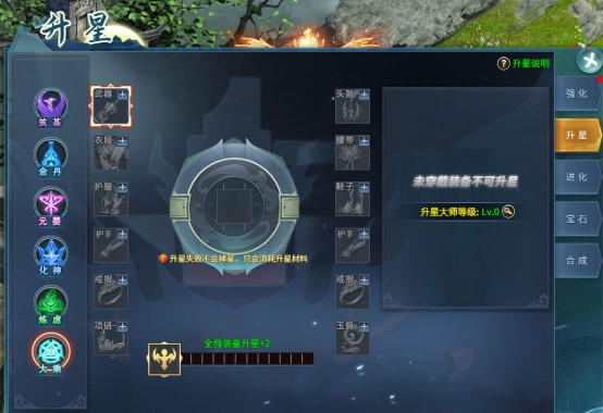 装备升星系统,玩家可通过使用装备升星石对装备进行升星,每次追加都会获得大量的属性加成,全身装备追加到对应的等级还会获得额外的属性加成。