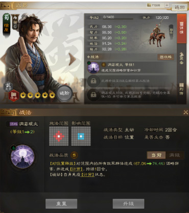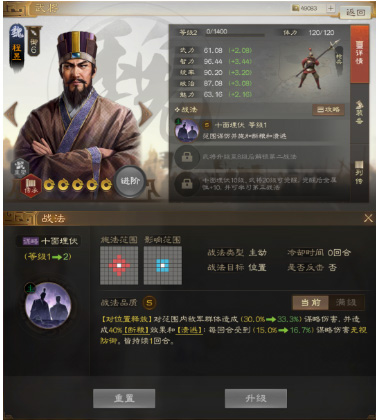 程昱智力成长3.44,自带战法【十面埋伏】单纯的谋略伤害并不高,但附带【断粮】和【溃逃】效果非常可观,持续伤害充分。很显然,他不适合高爆发阵容,他适合作为输出补充,并且他的身板也不脆,站位不用特别靠后。依然适合战法牧阵容,属于挂DEBUFF的定位。