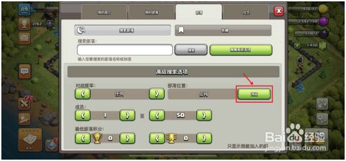 这时候就可以看到很多部落,我们在搜索栏右边点击高级选项