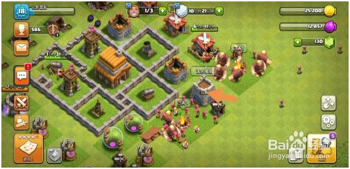 ②进攻时在城堡圈内下兵,或者说下兵让其进入这个圈。这里需要了解每个兵种的攻击偏好,如胖子的攻击偏好是防御设施,那么可以下一个胖子,胖子会去靠近防御设施从而进入部落城堡圈,触发援兵。