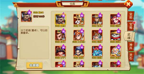 参加过关斩将,参加,还能获得血币和王者币,都可以通过商店获得武魂。只要主公好战,参加各类的挑战和战斗,就能获得武魂,以战养战,才是乱世中的生存之道。