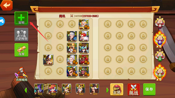 宠物系统需要主公角色等级达到14级后自动开启,宠物可以在布阵中进行上阵操作,上阵的宠物可以通过宠物技能与光环来加强我们阵容的战斗力哦!