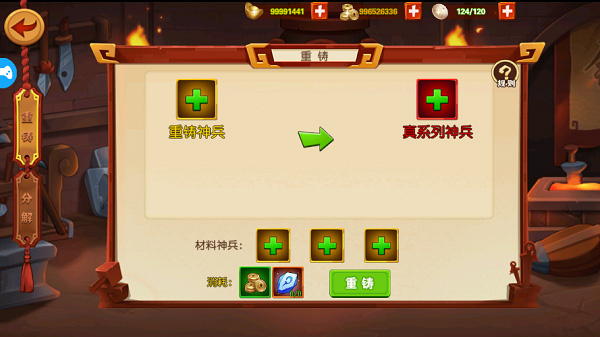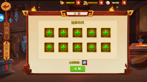 当然,在拥有不想要或者多余的神兵也可通过分解来获得铸神石。