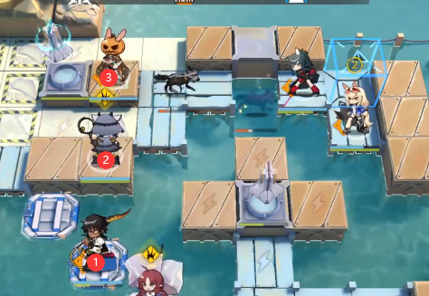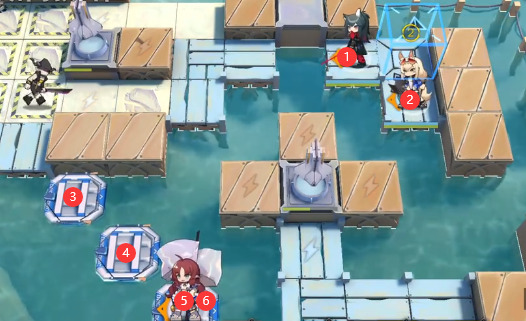 处理掉战术防御者后敌方战术弩手也就要登台了,战术弩手会固定从左上角和右上角的目标点出现,我们要做的就是通过靠近这两个目标点部署快速复活干员,在干员被敌方无人机标记后将他们撤离即可。这样下路防守的干员们就完全不会被破片无人机攻击到,非常完美。