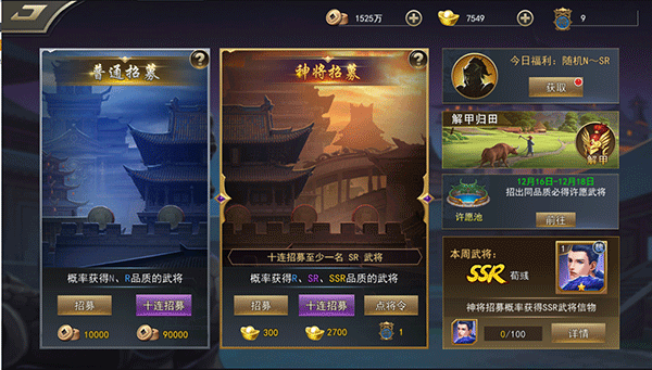遇到副本通关不了可以尝试雇佣好友的强劲武将,尽早加入军团,每天军团讨伐给一定数量的宝箱,可以开出元宝和武将信物,跨服争霸活动军团要参加报名,每周和每个赛季奖励都很丰富。