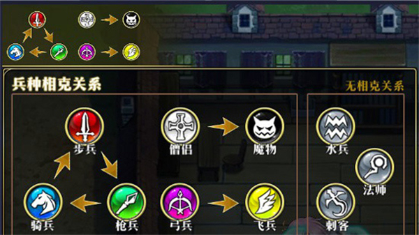 2、在游戏中,共有十大兵种,这十种兵种间互相克制,克制关系是这样的: