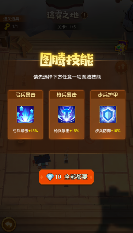 触发图腾技能会出现3个技能选择,可任意选择一项技能,并挑战拦路武将,胜利即可获得丰厚奖励啦~