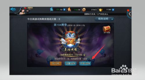 在英雄试炼页面中,我们点击开始试炼,并完成试炼。