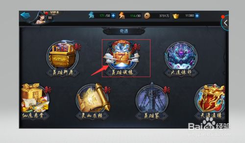 在奇遇页面,我们可以看到有很多的玩法,我们找到英雄试炼页面,点击进入到英雄试炼页面中。