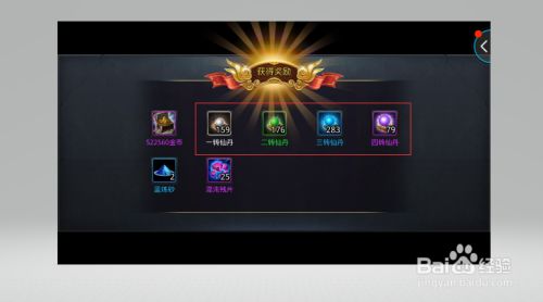 在试炼结束之后,会出现一个试炼的奖励,可以看到有一到四转的仙丹哦,每天都能进行一次试炼。