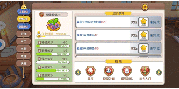 2、通过种植作物和养殖动物,可以获得一定的收益和等级提升,能够解锁更多玩法;