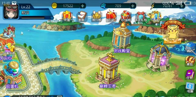 巅峰王者可以点开来玩玩,获胜可以获得技能机和道具碎片,还有就是扭蛋机,可以去看看,不过建议前期尽量保留。