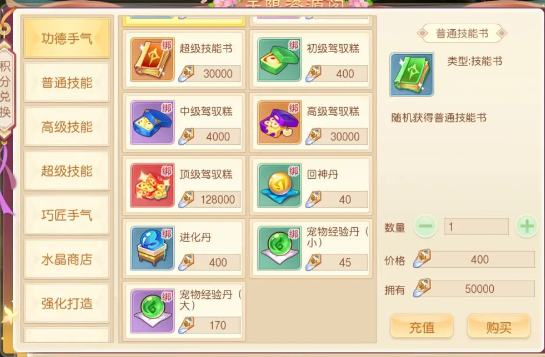 主要对宠物培养材料、宠物技能、宠物养成材料都需功德值货币来购买,当我们开启无限功德资源后就可以无限购买宠物的培养材料和宠物技能书。