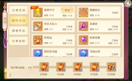 59级开启坐骑功能,到达60级后会解锁日程功能,我们可以点击日程查看游戏中有哪些活动可以参加。