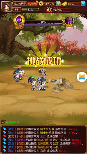每次只有挑战成功才会获得奖励,挑战过程中可以使用2倍速度快速进行挑战。挑战成功获得奖励,包括铁矿石以及铜钱。