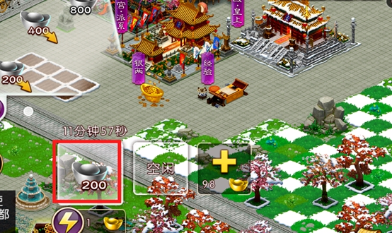 皇宫建筑分为五类,从上到下分别为功能性建筑、装饰性建筑(石狮子、石板等)、花草、动物、水上植物。8、繁荣度积分: