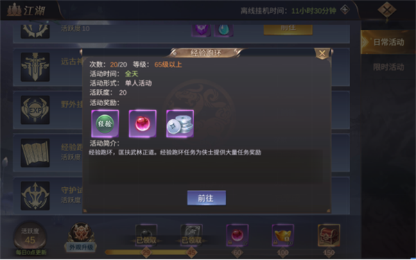 每天有20次的经验跑环任务,每次完成任务都可以获得大量的经验,是主要的升级途径。