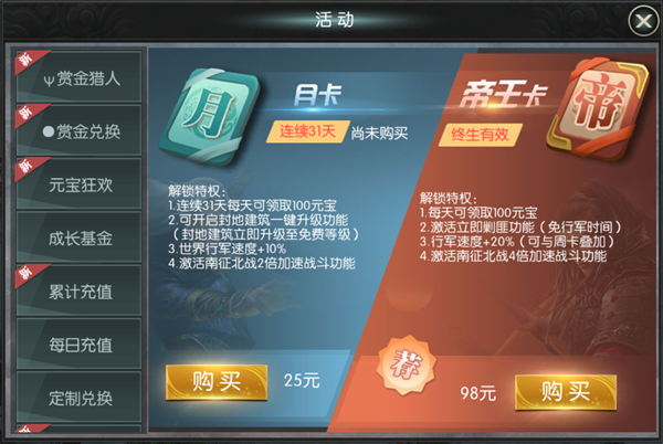 玩家每天都有一次免费购买各种资源的机会,上线必做+1