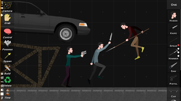 压力。你可以用重物将身体部位压碎。控制。改变字符的行为,给他们命令和使用选择的项目对其他字符。拖。拖拽并扔布娃娃或任何其他物体。多点触控是支持的,所以你也可以尝试一下。