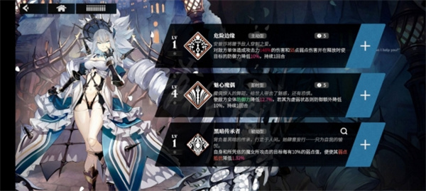 技能效果(Lv.1):自身和所凭依的魔女所攻击的目标每有【10%】的弱点值,便使其弱点抵抗降低【1.32%】。