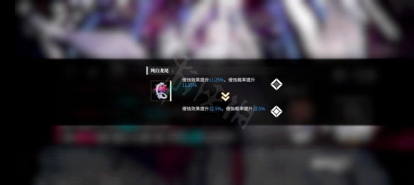 纯白龙尾:侵蚀效果提升6.25%/7.5%/8.75%/10%/11.25%/12.5%,侵蚀概率提升6.25%/7.5%/8.75%/10%/11.25%/12.5%。
