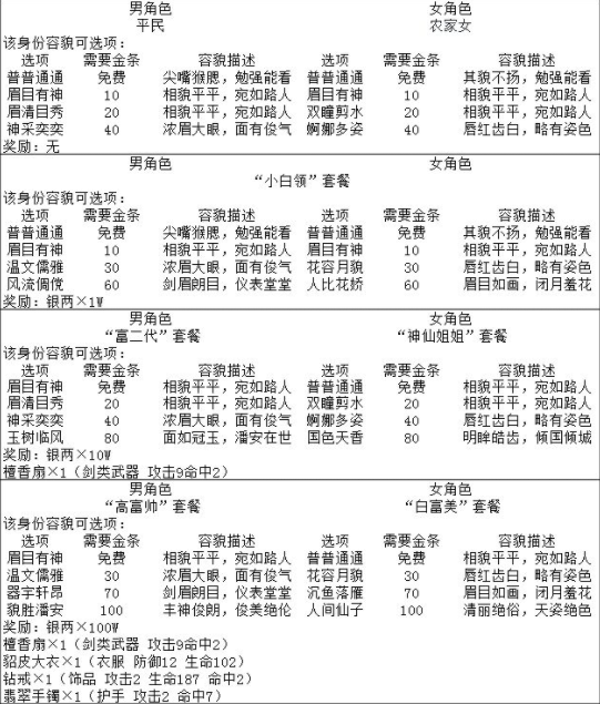 出生没有购买容貌可以在出平安镇之前,在平二指处用优惠价格整容一次。在镇中高手处完成出村任务,则优惠购买自动失效,之后只能在顺天府的胭脂铺通过“整容”来提升