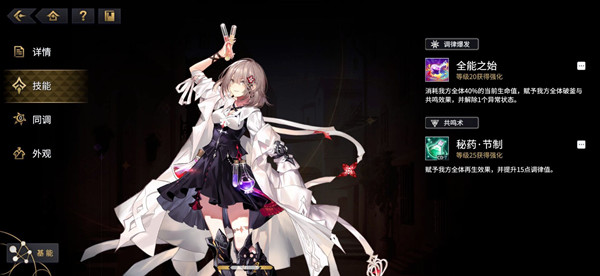 调律值在蓄满之后,角色就可以使用强力的调率爆发技能,虽然说和其他的蓝条以及怒气差不多,但是在游戏最特殊的还是共鸣术以及三种异常状态的配合。