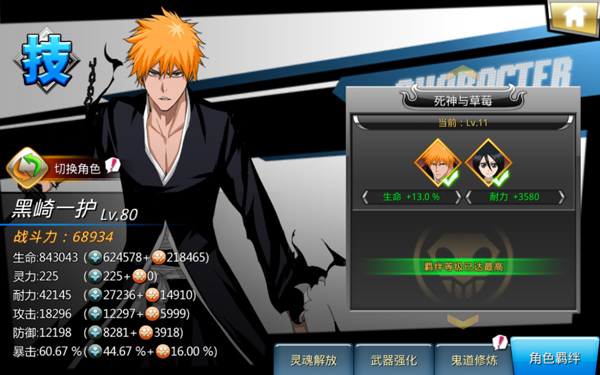 1、近百位原著角色收集养成,人物外形和招式成长变化,实现真正的卍解。
