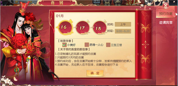 在婚礼进行前,需要进行的定制喜宴和发喜帖等操作。宴请的朋友越多,礼炮氛围越浓厚,获得的奖励会越多。婚礼时间要恰到好处的处在更多朋友空闲时间噢。