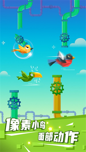 1、像素小鸟等你来魔性的控制,面容动作大比拼,使用你的表情来控制小鸟的飞行,像素鸟冒险闯关。