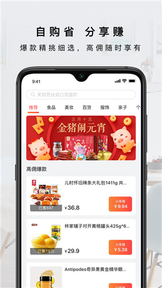 这是一款返利赚钱的应用程序,可以一键分享和推广商品,实现人脉变现。用户无需开店或提供担保,只需分享转发商品就能获得佣金奖励。平台上的货源丰富,每天都有优质的热销商品等待着你。商家直供发货确保了用户的售货无忧,让你随时随地都能赚到钱。这个应用特别适合宝妈和学生党使用,能够充分利用碎片化时间。如果需要的话,现在就来下载这款有赞客APP开始赚钱吧。