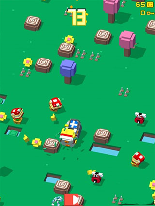 2、一路上会有很多东西,其中树桩会阻挡前进,怪物和地刺会击杀玩家,道具可以增加能力,向日葵可以获取金币,解救同伴可以获得额外队友;