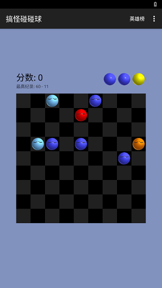 这是一款轻松简单的益智游戏。游戏开始时,屏幕上会出现5个表情古怪的小球。如果不点击它们,它们会闭上眼睛静静地待着;当你点击它们时,它们会睁开眼睛一直盯着你看。玩家需要将5个或更多同色的球排成一条直线(无论是横线、竖线还是斜线),即可消除这些球。但如果每次移动后无法消除任何球,则会在屏幕上新增3个球。此外,游戏中还会有白色发光的魔法球随机出现,这些球可以当作任意颜色的球来使用,帮助玩家更快地完成连线。如果屏幕上的所有位置都被小球填满且无法再进行移动时,游戏就结束了。此外,在搞怪碰碰球的手机版本中,每次消除5个球可获得10分,每多消除一个球则额外增加5分。游戏结束后还有成绩排名,让玩家能够检查自己的表现是否有提升。喜欢消除类游戏的朋友们快来下载体验一下吧。