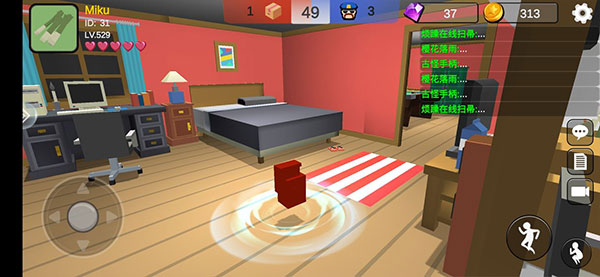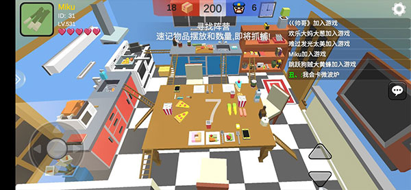 这是一款多人在线3D捉迷藏游戏,整体采用3D贴图与动态光源的像素方块拼接合成。尽管是像素风格,但不会出现卡顿现象。整体色彩搭配清晰明亮,色调接近儿时玩过的益智游戏,让玩家找回童年的感觉。游戏场景多为箱庭式设计,将地图分割成块状区域,在有限的空间内创造出既相似又各具特色的独立房间。这种设计有助于玩家在视觉和感觉上扩展地图范围,对记忆力好的玩家来说是个福音,因为每个房间虽相似但都有独特的标志物,玩得越多越容易记住。游戏背景音乐轻松愉快,适合多人休闲娱乐,两者结合非常有趣。此外,躲猫猫大乱斗游戏分为两个阵营:寻找者和躲藏者。躲藏者可以伪装成各种物品,并利用皮弹和3D声音口哨误导寻找者。寻找者需在200秒内找到所有躲藏的玩家才能获胜。还在等什么?快来下载一起躲猫猫吧!