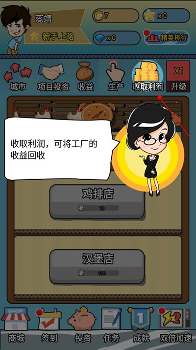 其他获取金币的途径还包括签到、成就、任务以及项目投资等等;感兴趣的玩家快来验证一下自己的商业才能吧!
