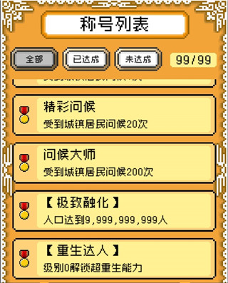 【极致融化】:人口达到9,999,999,999(多用祭典刷吧……)