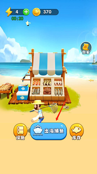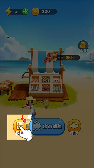 10、将鱼存储好了之后点击出海捕鱼;
