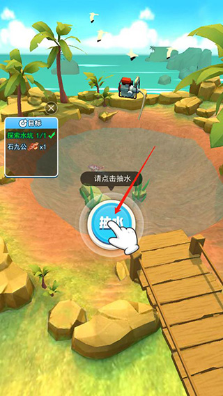 5、卡通风格的画面设计让玩家沉浸在另一个海洋世界。2、水抽干之后抓鱼更方便,然后点击抓鱼;