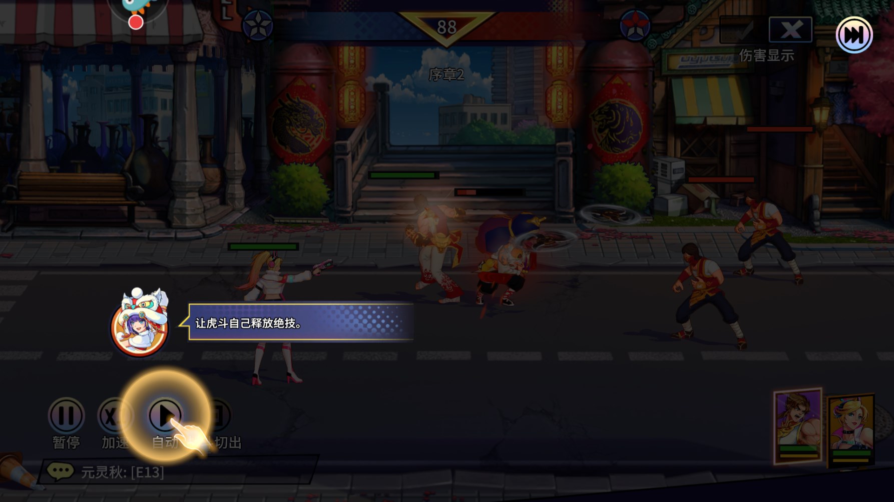 5、但是不要高兴的太早,东西还没有到手呢,继续干架,此时刚刚获得的新角色也会上场帮助我们