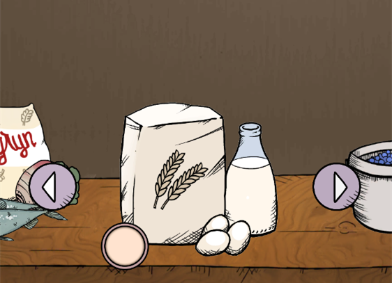 3、买到蛋糕的材料之后回到家里,走到厨房,点击厨房右边的橱柜,然后就会出现材料的页面。